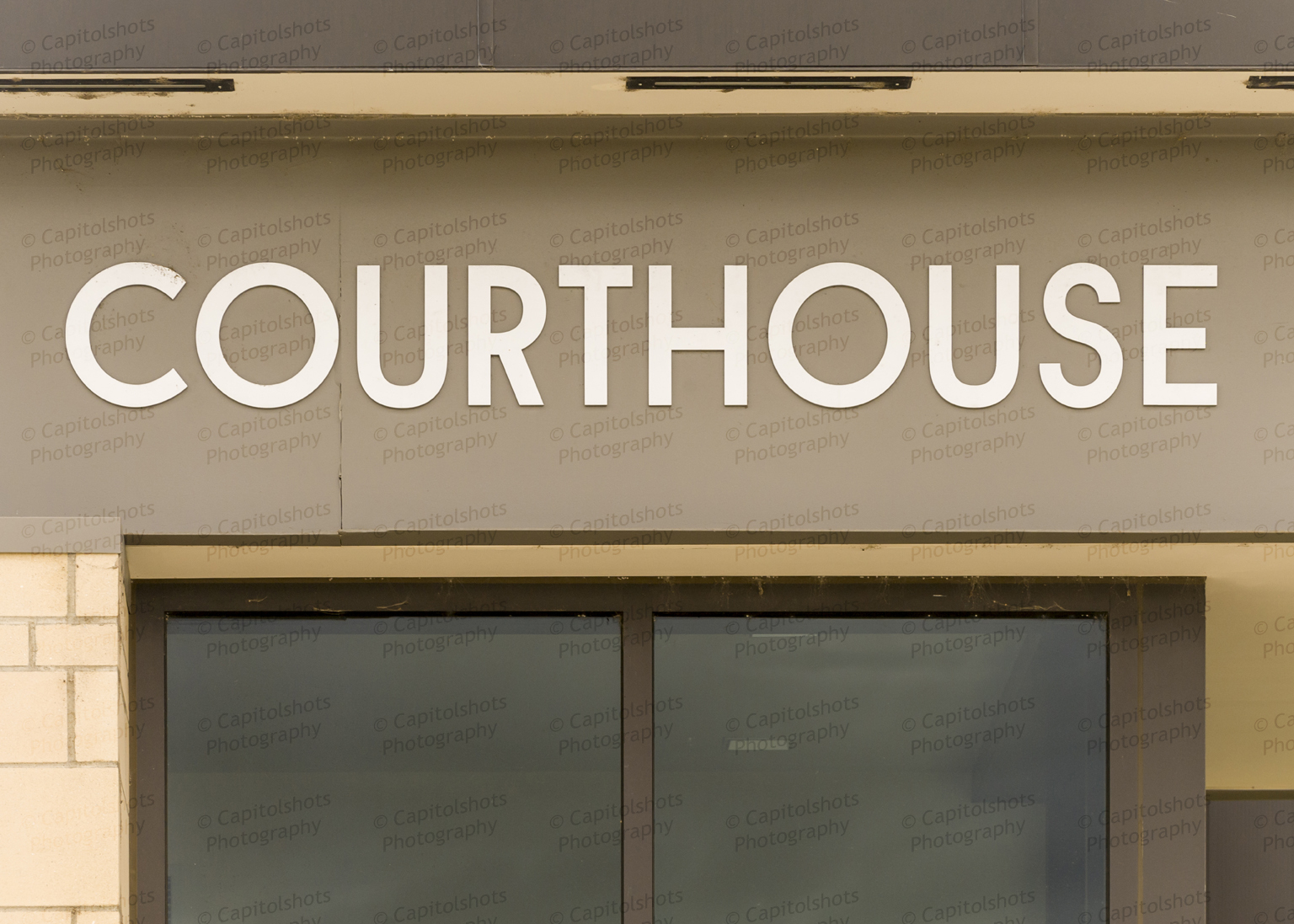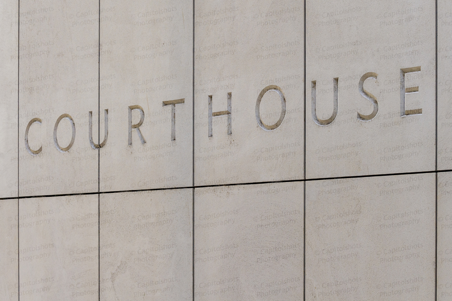 Photos from the collection of Capitolshots Photography of close-ups of the word “Courthouse” (stylized as one word) on courthouses from across the United States. The images in this collection are in a mix of color and black and white and are presented in a variety of sizes.